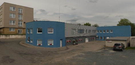 Několik fotografií, pro získání přehledu o budově a jejím okolí: Celkový pohled na budovu z parkoviště: Hlavní vstup do budovy: